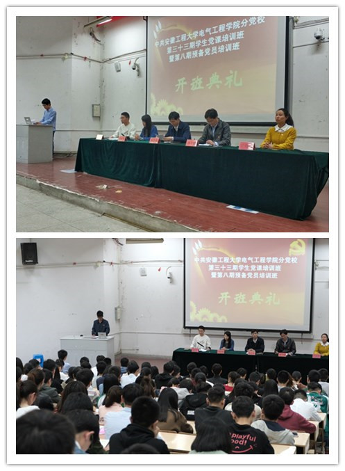 2018年4月18日下午,二教报告厅座无虚席,阵阵掌声,beet365分党校第三十三期党课培训班暨第八期预备党员培训班开班典礼在这里隆重举行。公司党委书记、院分党校董事长杨会成,公司党委副书记郭全根,院团委副书记毕亚琴,预备党员培训班班主任欧晓静和本次培训班全体学员参加了本次典礼,开班典礼由党课培训班班主任陶涛主持。