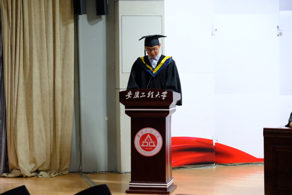 毕业生代表自动化144班钱磊上台发言,他分享了自己在大学四年里的收获和感悟,表达了他对四年美好校园生活的留恋,对公司及老师的衷心感谢,对母校的真诚祝愿。