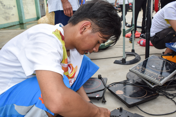 科技扶贫”家电义务维修及置换小分队携带维修家电的基础工具、器件以及科普宣传手册,在到达定目的地后,第一时间搭建起了维修服务站,村民们陆续将故障家电送来维修。团队成员对每一件故障电器进行分析、拆卸、更换元件、焊接、安装,并对部分无法维修的家电,进行了免费置换活动,村民们被团队成员倾心奉献、认真服务的精神所感染,纷纷点赞。