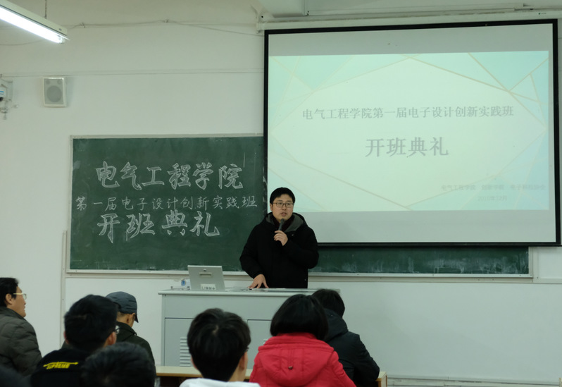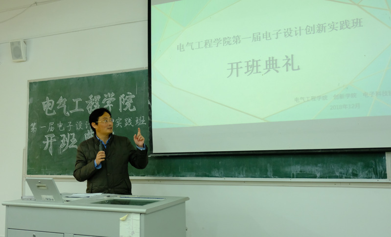 最后,郭全根要求学员们规范行为,遵守纪律;鼓励同学们将创新运用到自己的专业中,真正地做到格物致知、学以致用;并预祝第一届电子创新实践班取得圆满成功。