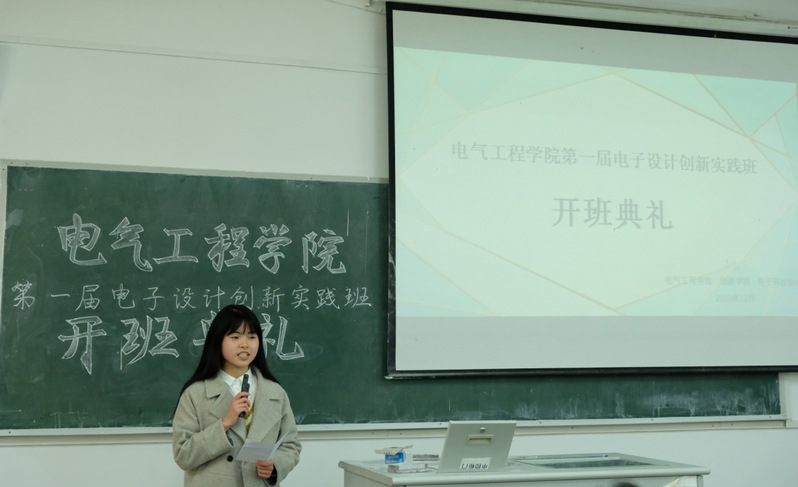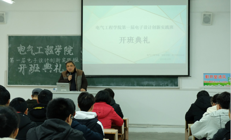 最后,郭全根要求学员们规范行为,遵守纪律;鼓励同学们将创新运用到自己的专业中,真正地做到格物致知、学以致用;并预祝第一届电子创新实践班取得圆满成功。
