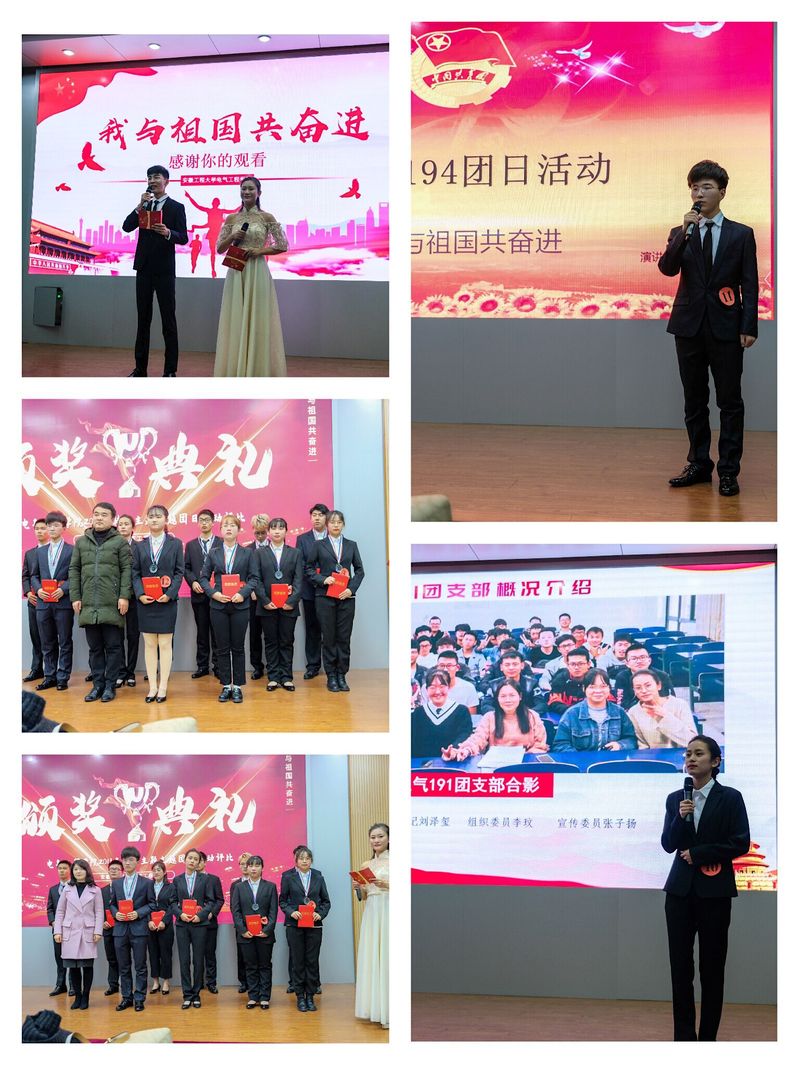 各团支部从活动开展主题、活动内容、活动亮点等角度展示他们的活动成果。其中,自动化184团支部为弘扬“三走”精神,响应公司“走出宿舍,走出网络,走出课堂”的号召,在操场进行了素质拓展训练,通过知识竞答、听词猜歌名、拔河等趣味游戏,不仅让同学们在此活动中强身健体,更学习到了党团的知识,回顾了革命年代的峥嵘岁月;通信191团支部以主题团课的形式了解党团历史,深刻展示了一代人又一代人的责任,同学们立志在不懈奋斗中,树立崇高理想,砥砺无悔青春;通信182团支部组织同学们观看了《厉害了,我的国》纪录片,以青年团员喜闻乐见的形式展现了新中国成立70年以来的巨大成就。观看结束后,团员们以团小组为单位分享观后心得与体会,大家从本次团日活动中受益匪浅;电子193团支部在烈士陵园瞻仰、缅怀为民族解放事业舍生取义,长眠于地下的烈士。通过了解革命先烈不怕牺牲,敢于斗争的伟大精神,鼓励团员青年不断激发奋斗精神,用“奋斗的青春最美丽”的实际行动为青春梦增光;电气182团支部前往了芜湖市科技馆,在青涩光影交错的瞬间,支部成员回望历史,感受华夏文化经久不衰的魅力,并在留言板上写下了自己对祖国母亲即将迎来70华诞最真挚的祝福。通过丰富多彩的主题团日活动,团员们坚定了文化自信,表示在今后将砥砺前行,无悔青春。