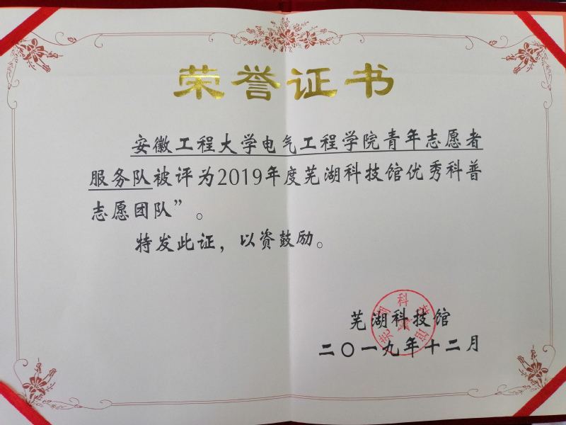 近日,在芜湖市科技馆2019年“优秀科普志愿服务团队”和“优秀科普志愿者”评选中,beet365团委员工会青年志愿者队获得“优秀科普志愿服务团队”称号,陶楷文、任旭、张欣研三名志愿者获得“优秀科普志愿者”称号。