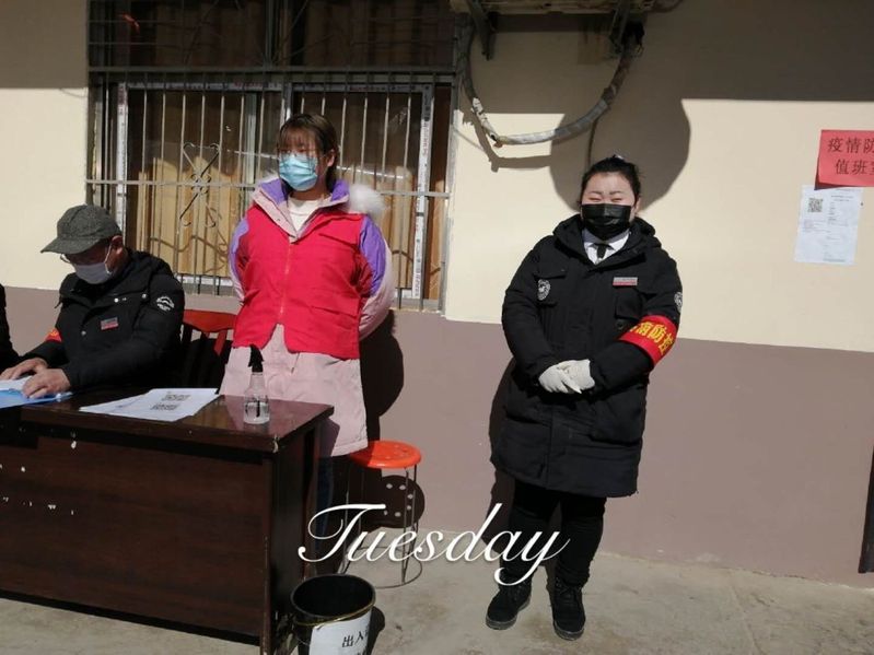 通信173郭明璇由于爸爸陪护爷爷住院的医院出现确诊病例,按照防疫规定,她一家三口自觉居家隔离14天,隔离结束后,她主动向所在的颍东区河东街道枣园社区请缨,从2月18号开始作为一名志愿者协助社区工作人员,在小区门岗,与社区工作人员、物业保安一起对小区进出人员进行体温检测,对来访人员和车辆进行排查。