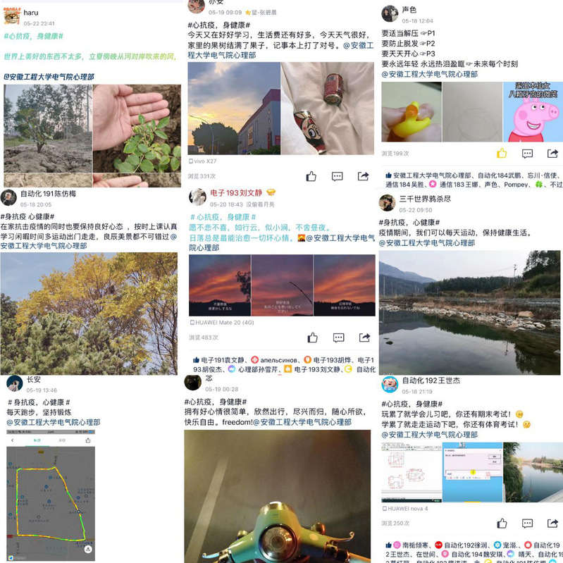 本次心理健康月活动是在疫情背景下线上组织开展的,同学们积极参与,分享他们宅家的快乐生活,进一步增强老员工心理健康意识,提高员工情绪管理和心理疏导等能力。