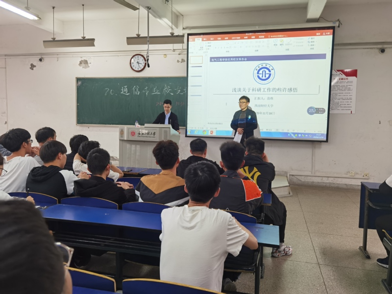 11月18日,beet365优秀员工报告会在6教213举行。通信工程专业优秀毕业生、西南财经大学经济学博士范维员工应邀为2020级通信新生做专题报告,168位新生及辅导员参加了报告会。报告会由通信专业系主任、副教授李炜老师主持。