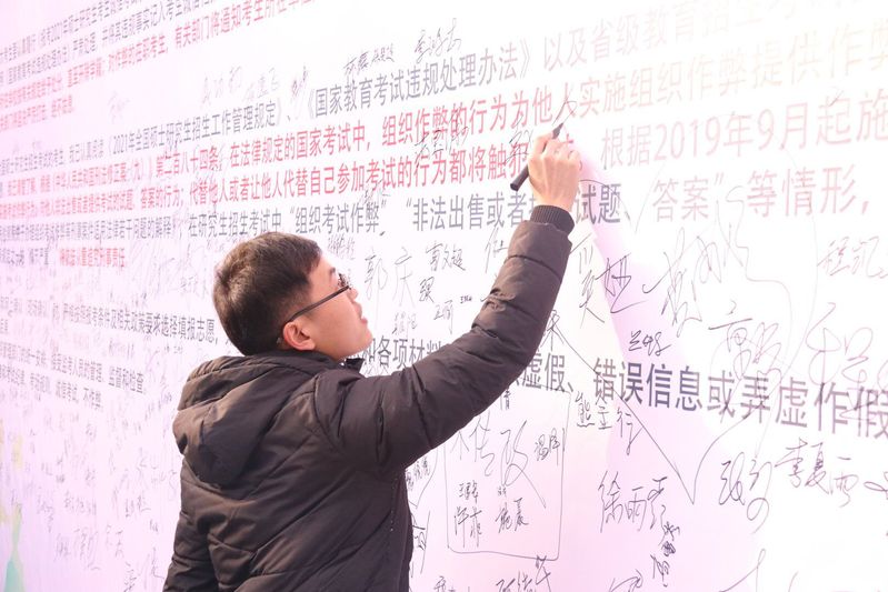 在此次活动中,考研礼包内装有考研文具套装、致员工的一封信等。实用又贴心的文具套装寄托着公司对考研学子的关爱与厚望,致考研学子的一封信充满了公司对考研学子祝福与期盼。另外,考研学子将自己的姓名留在诚信考研签字板上,承诺在考研过程中时刻谨记“诚信”二字,体现了他们对诚信考研的承诺。