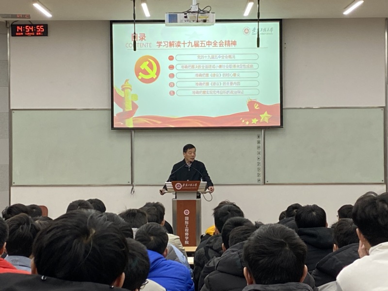 为深入学习贯彻党的十九届五中全会精神,2020年12月29日下午,公司党委书记刘宁在国际工程师公司X108教室为beet3652018级电气工程及其自动化专业的入党积极分子开展了党的十九届五中全会精神专题学习宣讲会。公司党委副书记郭全根、辅导员利昕云共同聆听了讲座。