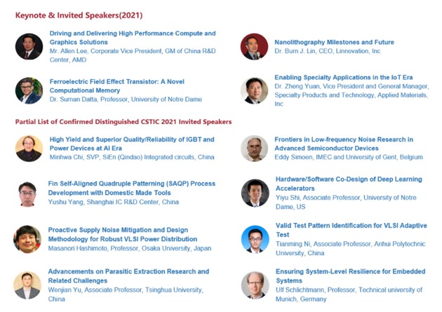 另外,人工智能(AI)芯片、6G芯片、神经形态计算技术、先进记忆技术、3D集成、MEMS技术等热点话题也在大会上讨论。本次会议彰显了国际合作的力量以及产业、学术合作的重要性,及时发表最新的应用和技术研究成果,对了解行业现状和技术研究成果具有重要意义。CSTIC 2021由SEMI、IMEC和IEEE主办,由IMECAS、浙江大学杭州国际科创中心协办,并得到JCET、ADVANTEST、FUJIFILM、应用材料、Lam、HITACHI、JSR、Gigaphoton、ASM、日月光集团、蔚华科技、北方华创、TEL、安集等企业以及北京大学、浙江大学等高校赞助。
