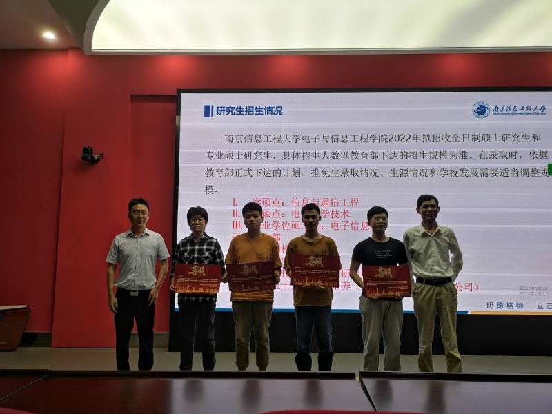 万发雨对公司优质生源的培养表达了感谢,双方共建了研究生优质生源基地。随后,他从学科特色、科研概况、团队队伍、研究生招生录取情况及校园生活等五个方面展开了介绍,还就同学们关心的“研究生待遇”、“考试政策”等内容向在座同学进行了详细的说明,并结合自己的成长经历,鼓励大家勇敢尝试、努力奋斗、永不言弃。最后,在与会师生的共同见证下,双方共同为公司考取南京信息工程大学的优秀员工代表颁发喜报。同学们纷纷表示,通过这次宣讲交流会,使我们对南京信息工程大学的基本情况及研究生招生政策、培养模式有了进一步了解,同时引领我们在考研的道路上,坚定决心,努力前行,争取在考研中取得优异的成绩。