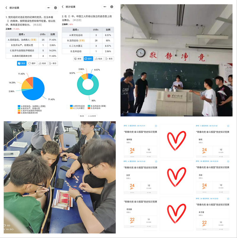 各团支部开展了形式多样的党史学习教育,帮助团员青年进一步铭记党史。电科201团支部开展了党史知识竞答活动,加强团员青年对党的知识了解,进一步营造团员青年积极争优秀、创先进、促和谐的良好氛围。自动化204团支部通过拼图游戏加深大家对党史的印象,拼图素材来自“新民主革命”“社会主义革命和建设”“改革开放和社会主义现代化建设”“中国特色社会主义新时代”等专题,各小组分别完成各自的拼图任务并对拼图的内容进行了讲解。