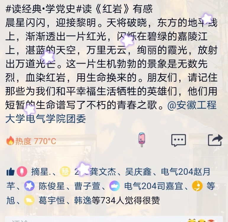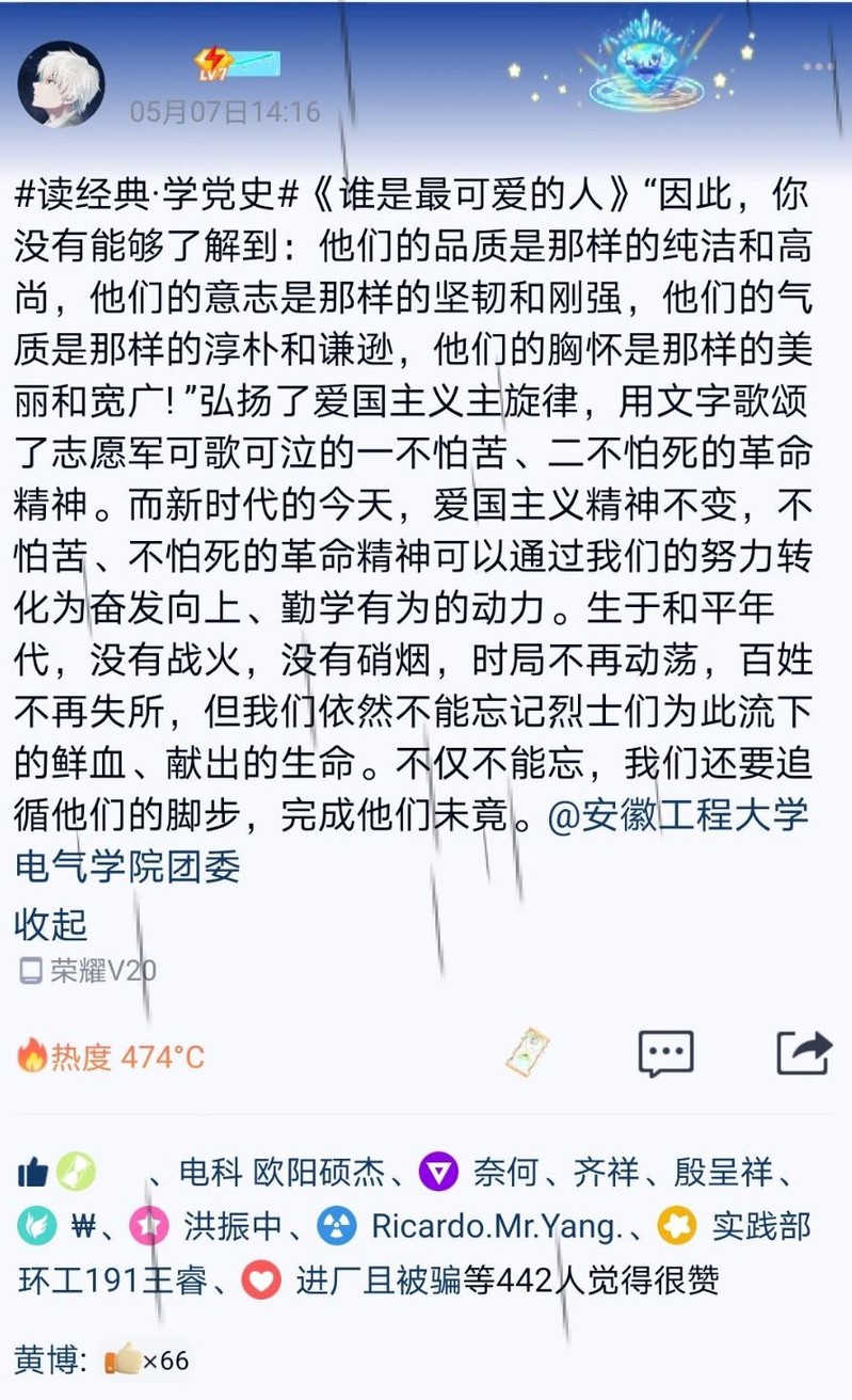 为献礼党的百年华诞,筑牢不忘初心、牢记使命的思想根基,深入学习中国共产党走过的光辉岁月。beet365积极组织团员青年开展“读经典·学党史”读书分享接力活动。连日来,同学们纷纷将自己的学习感悟和读书体会“晒”在自媒体平台上,并@beet365官方网站电气公司团委,累计点赞量达到3W+。