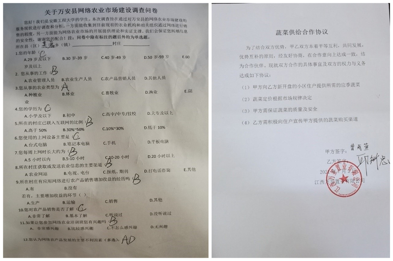 团队成员通过线上线下相结合方式,分别对菜农和客户进行走访调研。以寻找合适的消费者和发布品种为目的开展一系列的线上调研工作。同时,采用问卷调查和实地走访并行方式了解农户的种植类型、规模与质量,保障原产地的蔬菜供应。调研发现,农村信息资源相对匮乏,种植品种单一,经常出现成品滞销的情况,团队成员充分发挥互联网平台作用,让当地滞销的瓜果蔬菜得到了较好的销售,提高了农户的收入,为进一步激活农村经济市场,促进其朝着更包容、更多元化的方向发展。
