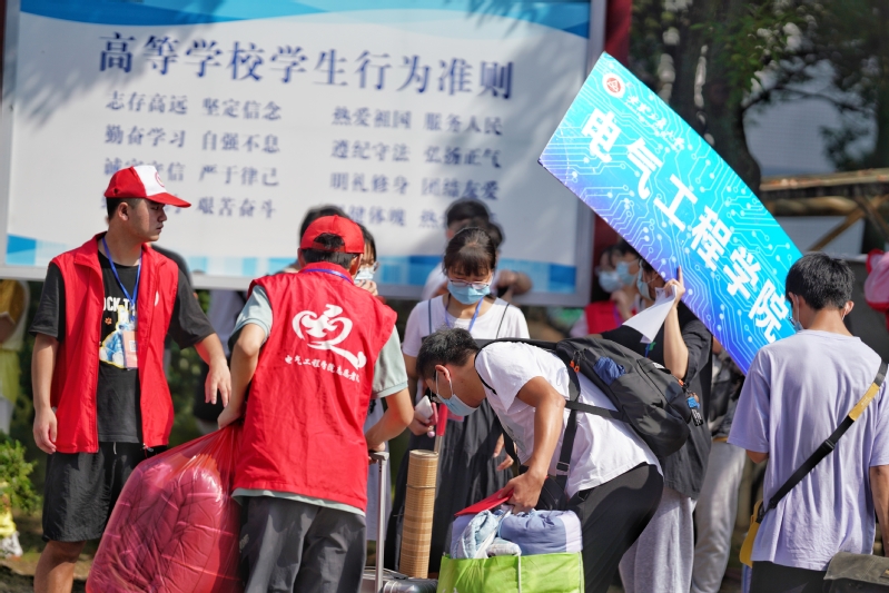 “同学,我来帮你拉行李,我们住在男生20栋!”