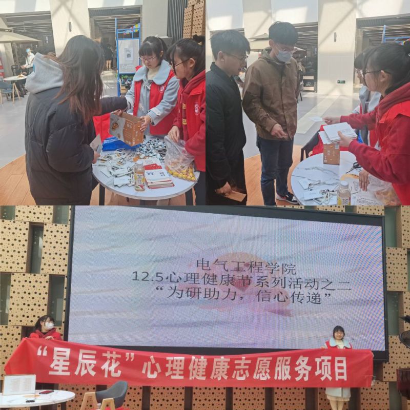 本次活动为公司“星辰花”心理健康志愿服务项目。活动分为“温暖的抱抱”“为研祝福,信心传递”“心灵之美,筑梦远航”专场音乐会三个子活动。“温暖的抱抱”子活动旨在通过拥抱的方式打开人与人之间的隔阂,传递冬日里的温暖。志愿者身着卡通人偶服装,向公司本部和国际工程师公司往来的员工寻求拥抱,员工们纷纷热情拥抱、合影留念,并在横幅上写下心愿;“为研祝福,信心传递”子活动旨在为考研学子加油打气、增强信心,减轻备考压力。志愿者在国际工程师公司南苑食堂为2018级考研学子送上2019级、2020级、2021级学弟学妹手写的寄语卡片,并送上小礼物,一件件卡片和礼物被送出,一份份鼓励和支持被传达;“心灵之美,筑梦远航”专场音乐会子活动旨在帮助员工梳理情绪、释放压力,让心情回归有序和松弛、平稳和宁静,并学习利用音乐为自己减压的方法。校艺术教育中心器乐团团长电气中外202黄健祺、校吉他协会副会长电气中外202陈佳豪等员工在国际工程师公司南苑食堂现场演绎《summer》《大鱼》等老员工喜爱的经典音乐作品,抖音公众账号“AHPU电气院心理部”同步直播。