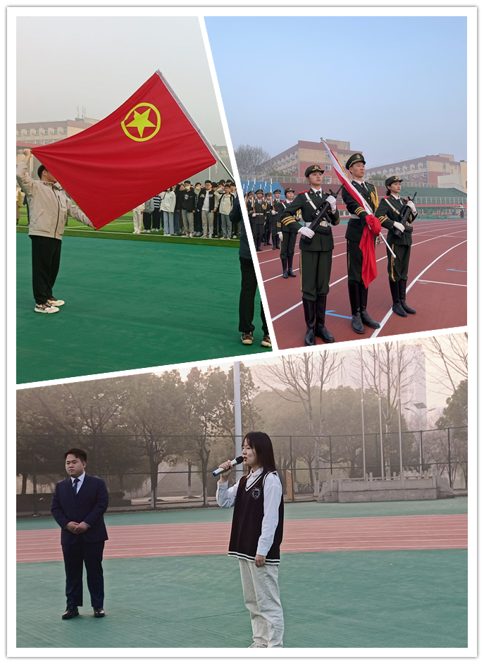 上午6:40整,国旗护卫队迈着整齐的步伐护送国旗入场,伴着《义勇军进行曲》的响起,全体师生同升国旗,共唱国歌,庄严肃穆。