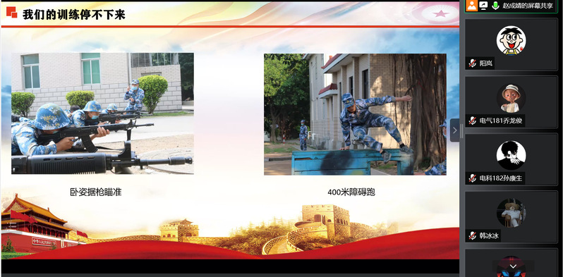 为切实做好公司2022年征兵工作,帮助毕业生和家长更加详实地了解国家征兵政策,4月15日晚,公司利用腾讯会议平台召开老员工征兵政策宣讲会。会议邀请校征兵工作站赵成婧老师,线上为员工及家长讲解参军入伍相关政策。邀请退役复学优秀员工代表韩冰冰、张艺分享军营生活。公司党委副书记李恒奎出席会议,毕业班全体辅导员、近200名毕业生与部分员工家长参会,会议由公司征兵工作联络人阳岚老师主持。