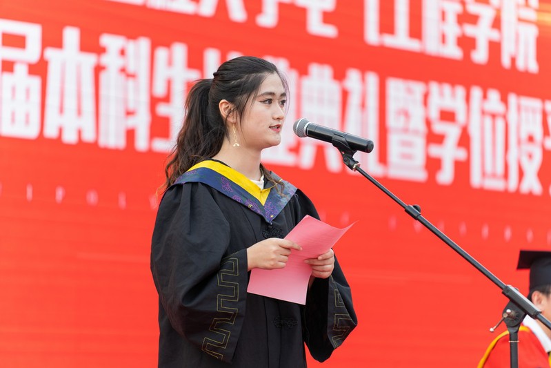 “我想代表全体毕业生向母校的老师们表示由衷的感谢,饮其流者怀其源,学其成时念吾师。感谢每位教给我专业知识和人生哲理的老师,感谢你们的倾囊相授,是你们的悉心教导和精心栽培,帮助我们满怀信心地走向人生的新征程。”考取国防科技大学研究生的毕业生吴雨欣分享了她的安工程故事。她说,感谢母校为我们提供了一个求知的平台,让我们有机会看到更加宽广的世界,我们将心怀感恩,大步向前!