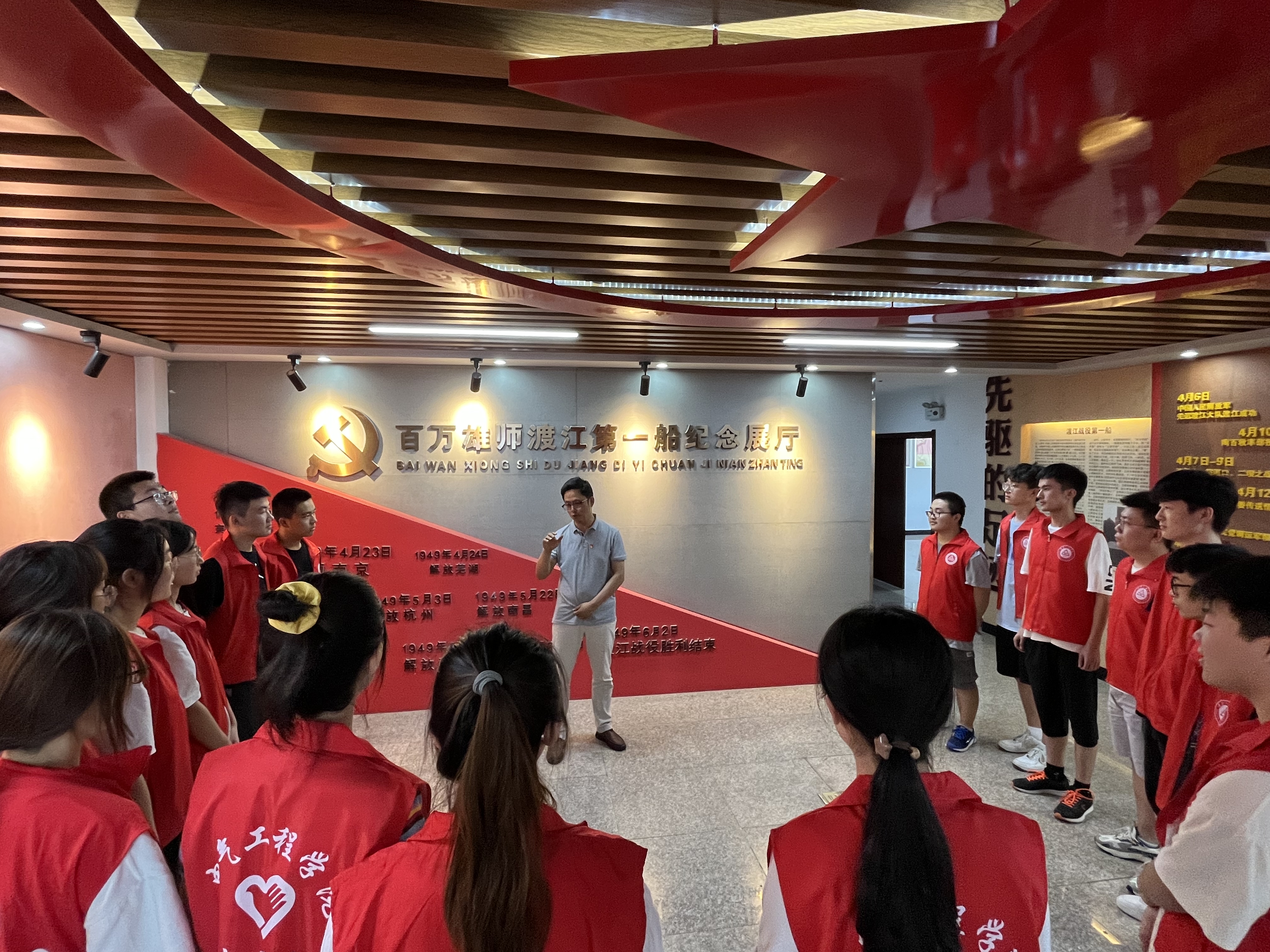 党史学习教育小分队到团洲村的“百万雄师渡江第一船”参观学习,公司党委副书记李恒奎现场讲授专题党课。李恒奎从马毛姐、车胜科、王德金三位革命先辈的光辉事迹出发,详细讲述了在那段峥嵘岁月里,广大军民团结奋进、冲锋在先、为国为民的革命英雄主义精神。他指出,今天是党的生日,同学们要在思想觉悟、业务能力、服务奉献等方面发挥好先锋模范作用,要在祖国最需要的地方唱响青春之歌,展现出“请党放心,强国有我”的青春豪情,以优异成绩迎接党的二十大胜利召开。
