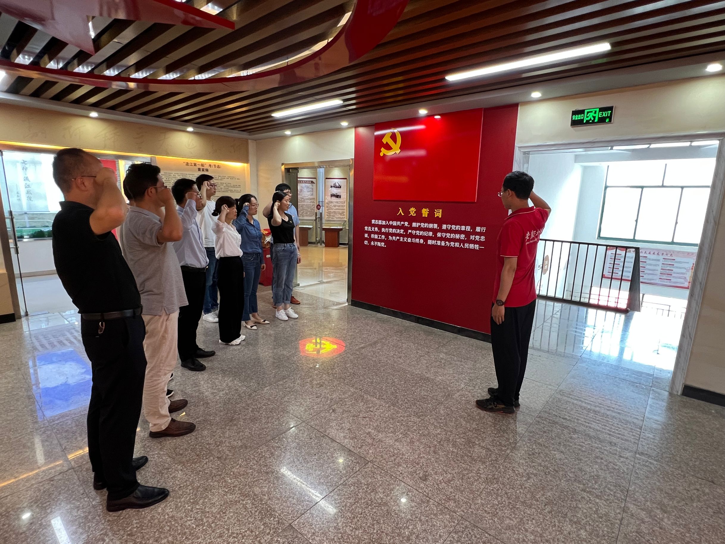 最后,公司老师在团洲村渡江第一船纪念馆重温了入党誓词。