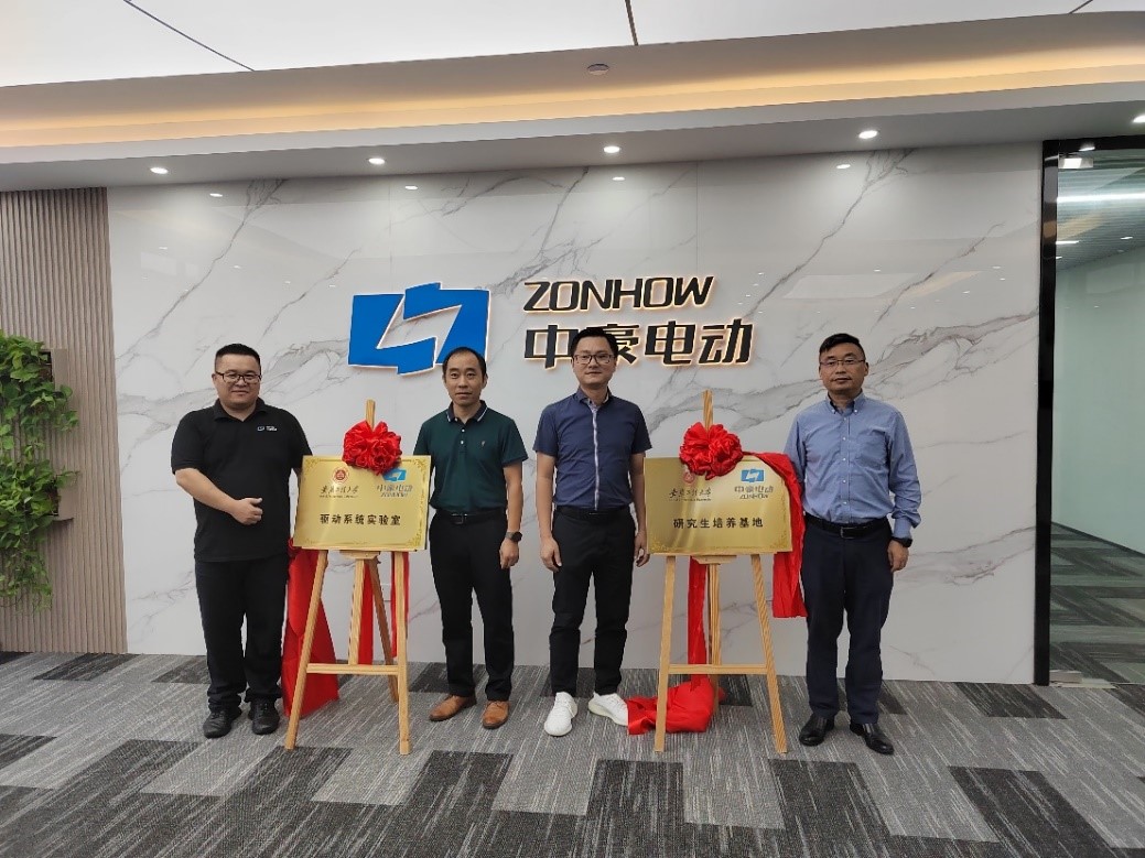 9月14日,beet365经理江明、副经理刘世林和青年教师王晨博士一行3人赴杭州中豪电动科技有限公司开展校企交流合作活动,双方签订了产学研战略合作协议,并为校企合作公司产品基地和驱动系统实验室揭牌。公司总经理张国强、总工程师陈栋和市场总监吴林等领导出席了相关活动。