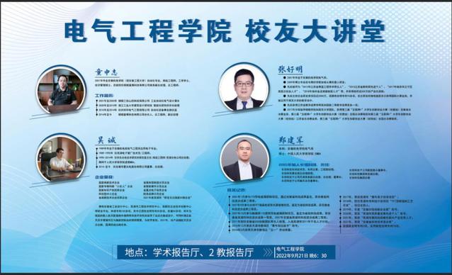 学做新时代电气人——“优秀员工为你讲奋斗”。01届自动化专业、铜陵富博科技总工程师童中志,01届电气系铜陵公司教授张好明,01届自动化专业、长信科技总裁郑建军和89届应用电子专业、华夏光电总经理吴诚4位学长热情真挚的分享了自己的创业经验、人生感悟,在人生规划与职业发展方向上为学弟学妹们提出宝贵建议,引导学弟学妹们树立爱国爱校、科研报国、团结拼搏、健康生活的价值观念,传递了昂扬的斗志,传承了奋斗的精神,展示电气人的精神风貌,激励着新生继往开来,奋发向上。