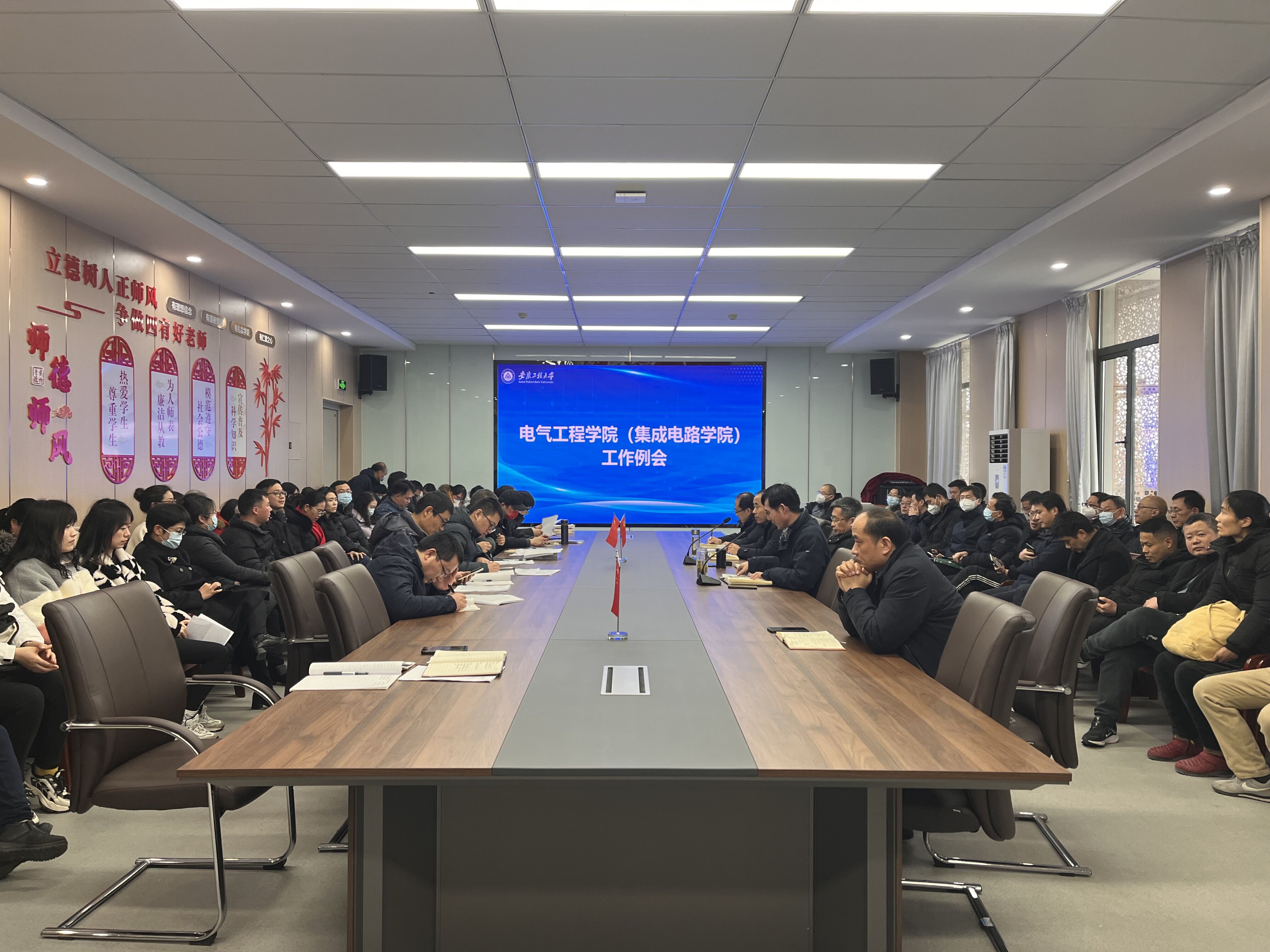 会议伊始,杨会成代表公司领导班子对全体教职工致以新年问候,对全院教职工一年来的辛勤付出表示衷心感谢。杨会成带领大家集中学习了习近平总书记在学习贯彻党的二十大精神研讨班开班式上发表的重要讲话,并就公司“三抓”工作、“三全六专”育人实践、新学期师生返校开学准备、毕业生就业等方面工作作了部署。他指出,“三抓”工作是贯彻落实新时代党的建设总要求和新时代党的组织路线的有效路径,是公司以高质量党建引领高质量发展的有力推手,全体教职工要聚焦“三抓”,凝心聚力,再推公司高质量发展迈上新台阶;“三全六专”育人实践是落实立德树人根本任务的现实路径,要结合公司“三全育人”综合改革试点工作实际,把“三全六专”育人实践落实落细,融入日常,助力老员工成长成才。经理江明介绍了2022年公司发展关键指标完成及年度考核情况,部署了2023年及本学期公司重点工作,并就进一步加强人才培养、学风建设、专业建设和团队建设提出了明确要求。他强调,要认真落实好公司开学后考试及教学相关工作;全面落实个性化人才培养方案,做好培养方案修订工作;加强国家自然科学基金申报工作指导和实验室安全检查工作。