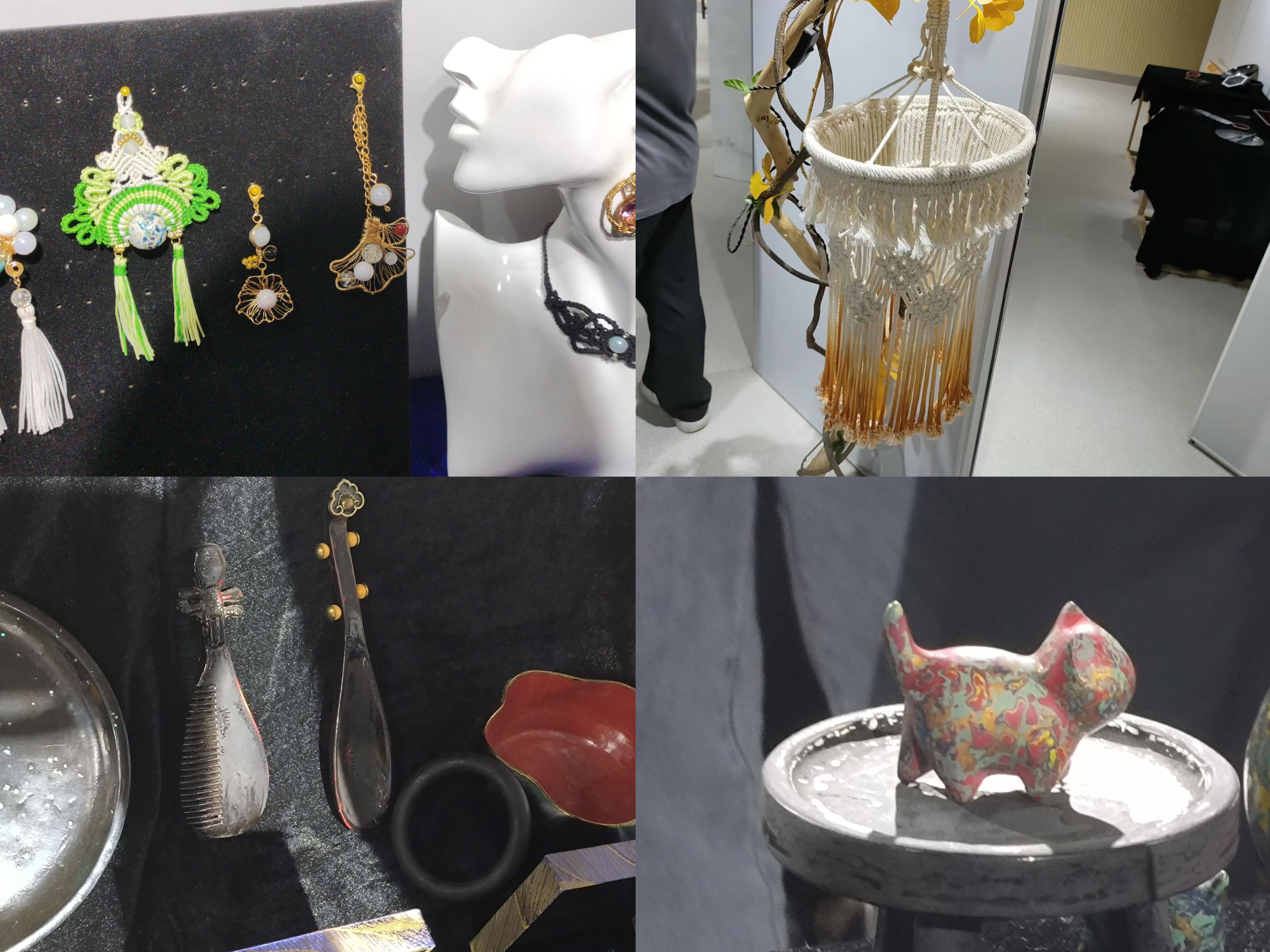 本次参展的作品有金属首饰、编织饰品、纤维艺术、漆艺、铜浮雕以及珐琅工艺制品等。