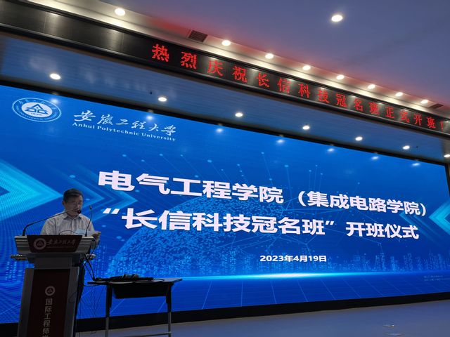江明代表公司对出席仪式的领导和嘉宾表示衷心感谢和热烈欢迎,并介绍了公司办学历史以及近年来公司和公司建设发展情况。他表示,冠名班是芜湖市紫云英人才计划的重要组成部分,是进一步深化产教融合、校企合作、协同育人的重要举措。冠名班的成立是校企实现深度合作的标志,公司将以此次冠名班开班为契机,进一步发挥高层次应用型本科人才培养优势,围绕产业技术和人才需要,在产学研、人才培养、平台建设等方面和长信科技开展全方位、宽领域的合作。同时,他希望冠名班学员能够抓住机遇,认真学习专业知识,刻苦训练专业技能,强化动手实践能力,练就真本领,以实际行动回报社会。