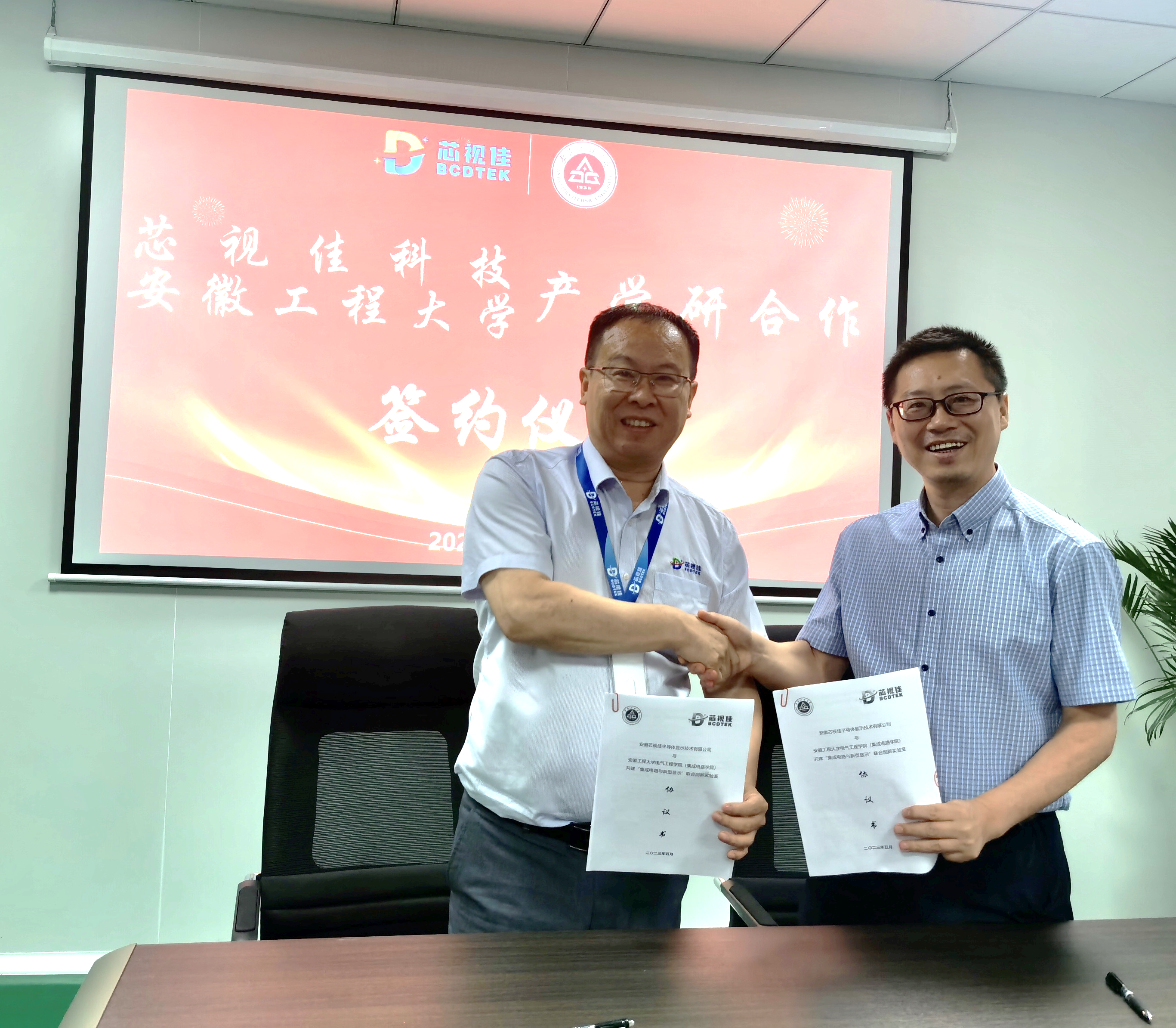 6月13日,beet365副经理(主持工作)林信南与青年教师杨康、黄登朝、王翔一行4人赴安徽芯视佳半导体显示技术有限公司(淮南)开展企业交流合作活动,双方签订了产学研战略合作协议,并为校企合作共建“集成电路与新型显示”联合创新实验室揭牌。公司董事长曹绪文、总经办负责人王睿、产品负责人孙圣、沈利军等领导出席了相关活动。