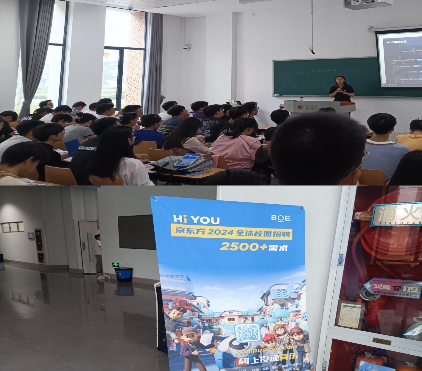 就业是最大的民生。高校毕业生就业工作更是占有举足轻重的地位。为进一步落实公司“三全六专”育人实践,做好毕业生就业育人工作。9月15号上午,公司秋季首场招聘宣讲会在国际工程师公司校区学习中心X106开展,京东方科技集团股份有限公司助力公司拉开2024届毕业生就业工作序幕。宣讲会现场同学们手持简历积极参加,教室座无虚席,甚至后排门口站满了来听宣讲的同学。宣讲结束后,同学们积极向人事经理递交了自己的简历,现场的一位同学说:“听了这家公司的介绍,总体感觉还是非常不错的,很符合自己的预期,而且这家公司也很开放包容。担心自己在竞争激烈的考研氛围中落败,就想着找个工作,再认真备考,做到手中有粮、心中不慌。”