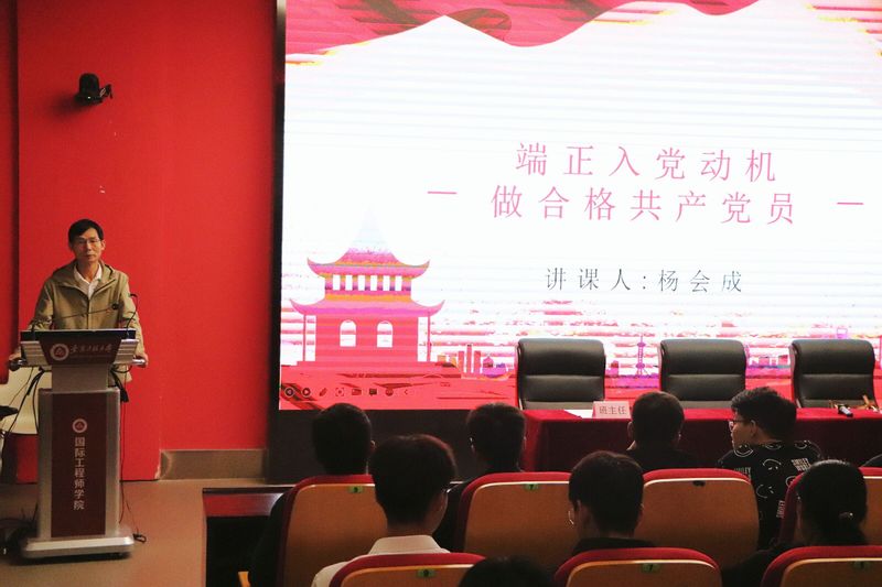 开班仪式结束后,杨会成为培训班的学员们上了第一节党课,主题为“端正入党动机 ,做合格共产党员”,他向学员们说明了端正入党动机的重要意义,强调不仅要在组织上入党,更要在思想上入党,在行动上入党,真正地迈好入党第一步,系好入党第一粒扣子。
