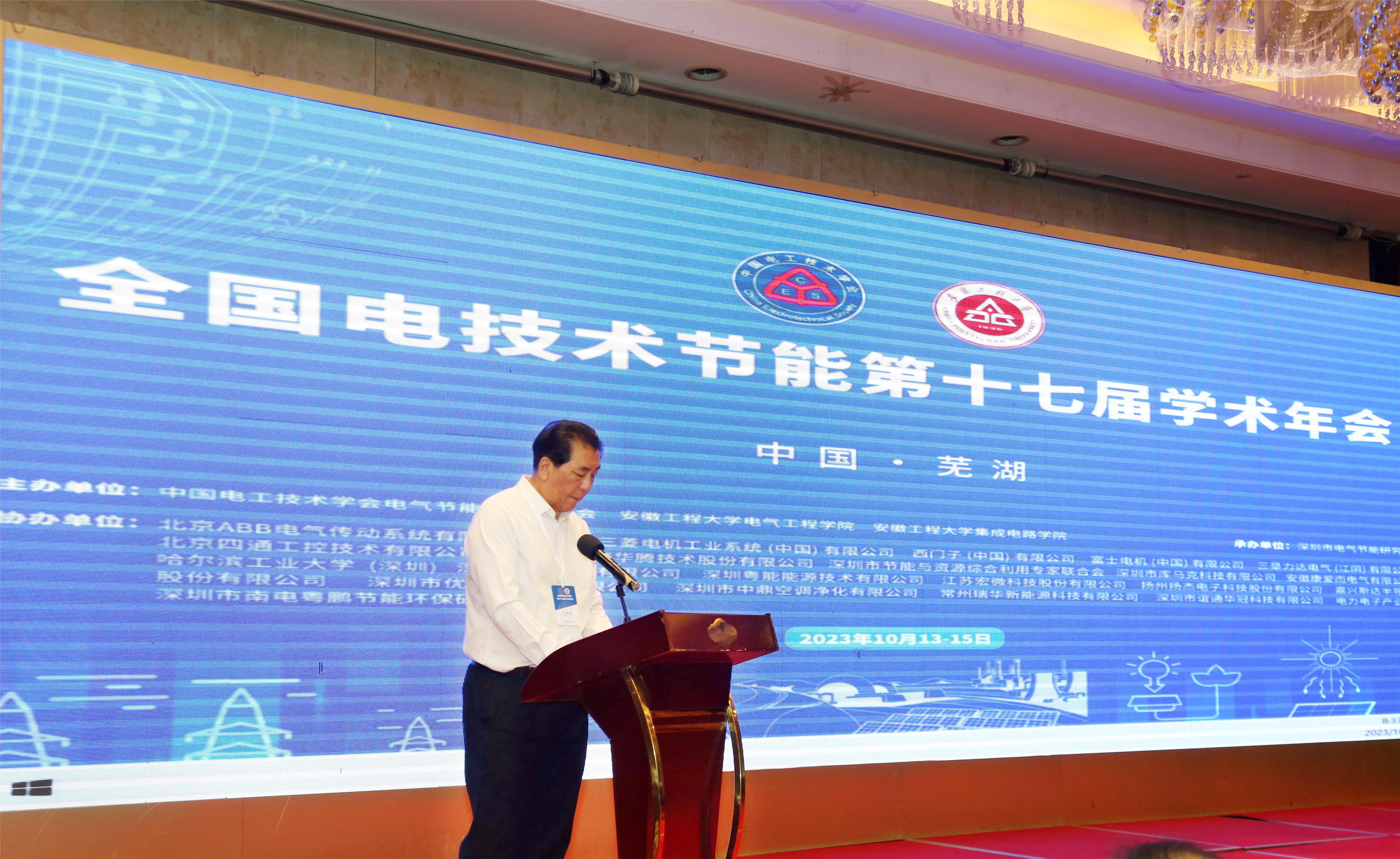 全国电技术节能第十七届学术年会暨中国电工技术学会电气节能专业委员会八届二次理事会于10月13日至15日在芜湖举行,会议由中国电工技术学会电气节能专业委员会(以下简称“专委会”)、beet365主办,深圳市电气节能研究会承办。专委会名誉主任、中国电工技术学会四十年荣誉称号获得者王占奎,清华大学电机系教授、俄罗斯外籍院士李永东,专委会副理事长兼秘书长孙长富,beet365官方网站副董事长周虹屏,beet365领导等人出席开幕式,开幕式由孙长富主持。来自清华大学、东南大学、南京航空航天大学、中国一汽研发总院等20多位高校和企业的专家学者以及公司研究生150余人与会。