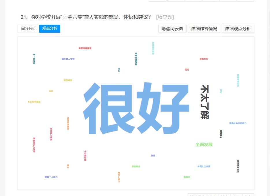 思想动态调研是院坚持以员工为中心,打造“有温度”的教育的具体体现接下来,公司将进一步细致梳理员工所反映的问题,做好问题的解决及反馈,扎实做好员工教育管理工作,积极服务员工成长成才,助力员工全面发展。