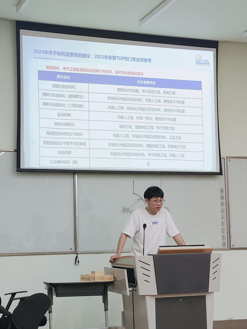 其次,汪夏磊详细阐述了比赛的流程和往年优秀获奖作品,针对公司近年的竞赛成绩及优势展开分析。他通过生动的案例和具体的数据,让同学们对比赛有了更加直观的认识。同时,他还特别强调了今年比赛规则和赛题的改动,提醒大家要密切关注比赛动态,做好充分准备。
