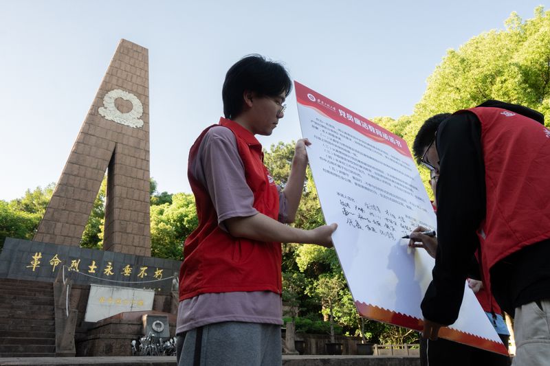活动以体验长征路的形式,环神山公园5公里设计13个站点,每个站点由多名党员作为志愿者驻守,入党积极分子徒步经过站点时进行通关打卡,抢答志愿者提出的关于《中国共产党章程》《条例》的相关问题后方可继续前行,回答正确且得分高者由社区颁发奖品。终点设在烈士陵园,全体成员在烈士纪念碑前为光荣牺牲的革命先烈默哀。接着,入党积极分子培训班学员见证了50余名党员重温入党誓词。最后,党员在廉洁教育承诺书签名墙上签名,向革命先烈承诺要做廉洁向上的合格党员。