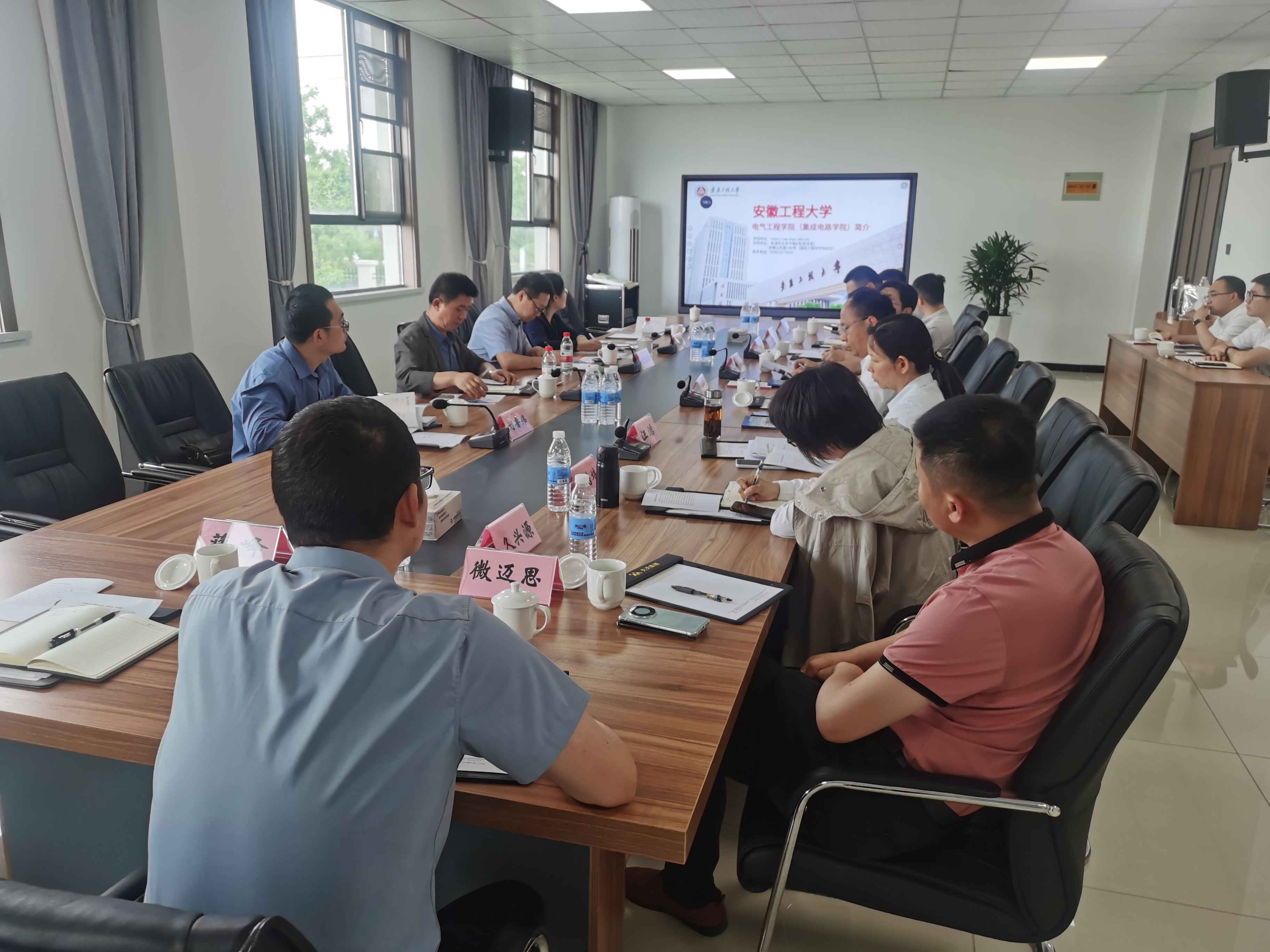在随后举行的座谈会上,林信南副经理向明光市副市长杨睿、明光市经济开发区党工委副书记姚远、明光市委组织部副部长史卫等政府相关部门负责人及企业代表详细介绍了公司的发展历程、教学科研成果以及人才培养成效。明光市政府相关领导对代表团的到访表示热烈欢迎,并详细介绍了明光市的产业发展规划、政策支持以及人才需求等情况。