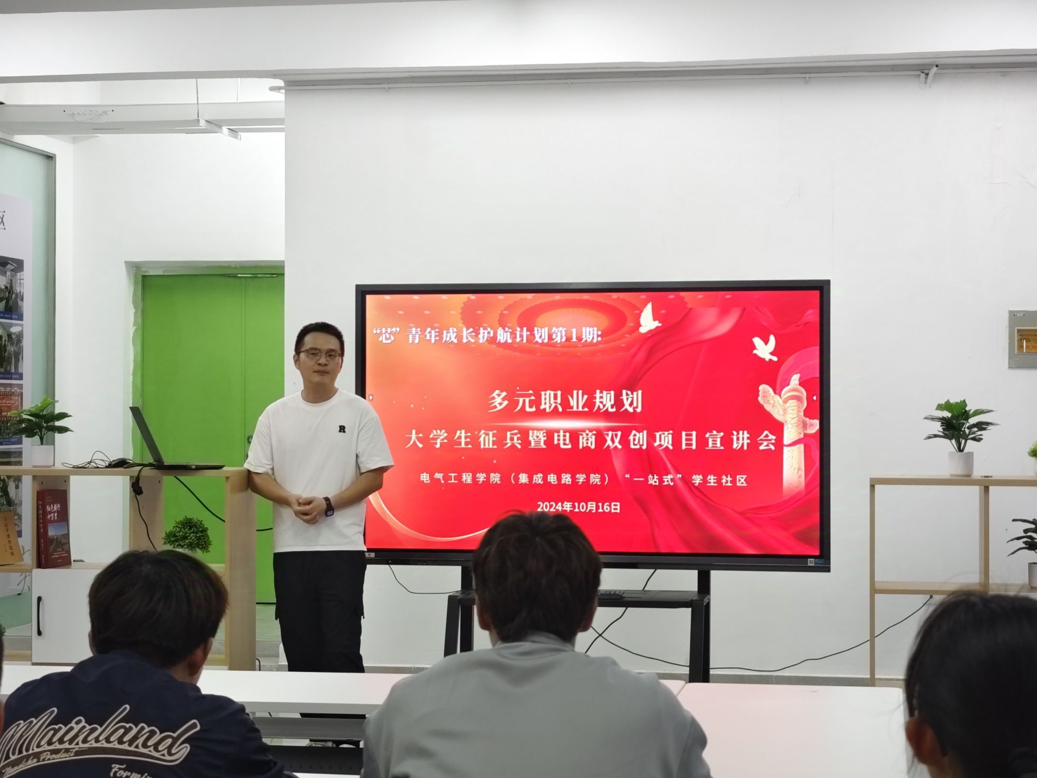 阳岚老师宣传了老员工征兵政策的基本知识,从入伍流程和入伍规划等方面认真讲解了网上报名、体格检查、政治考核等具体要求,号召广大青年投笔从戎,建功立业。高原老师从政策分析、电商前景、创业模式等方面详细的讲解了电商双创项目,介绍了团队孵化大学创业成功的案例,并在现场进行了项目负责人的动员招募。同学们了解了电商行业的最新趋势,增强了对未来职业发展的信心。
