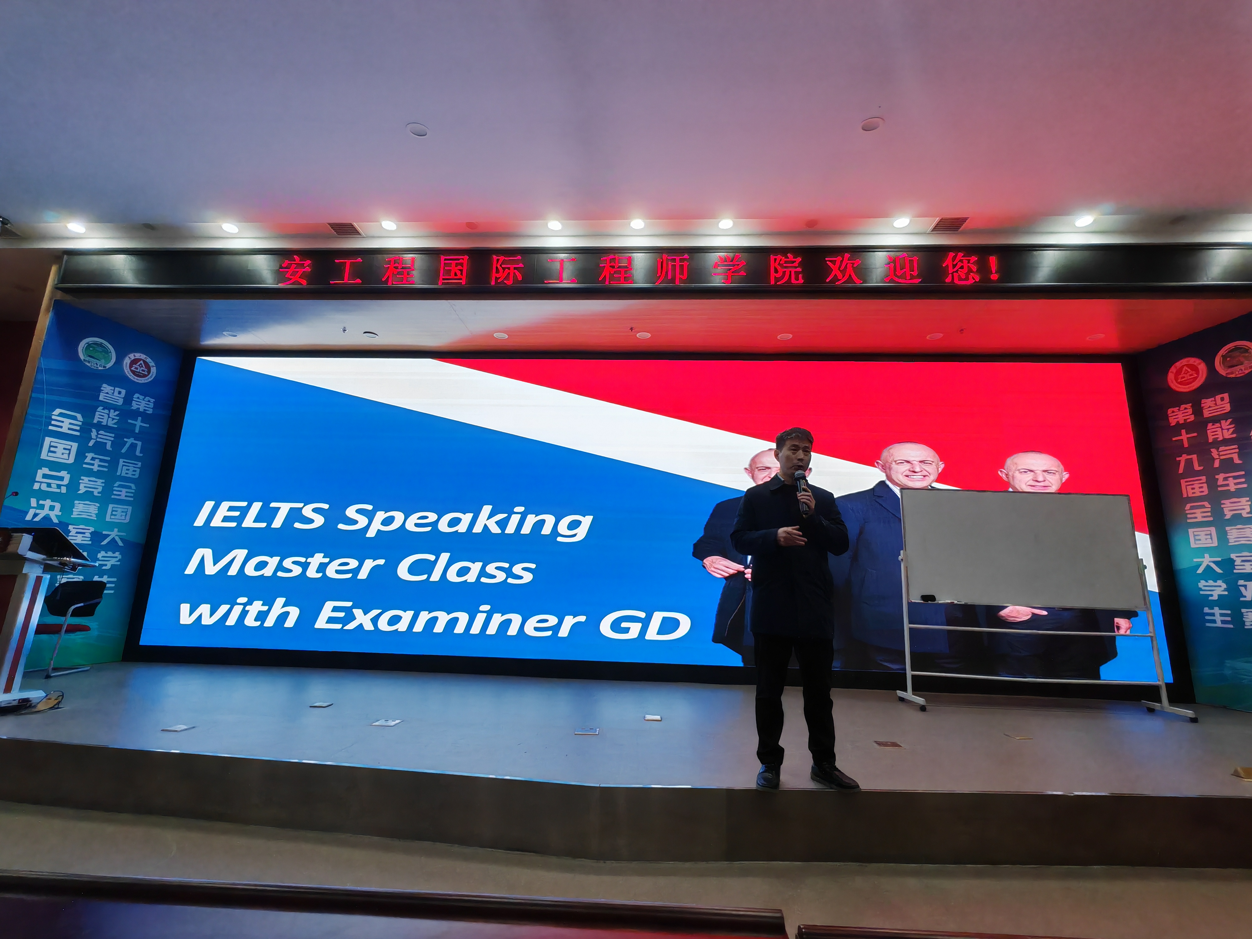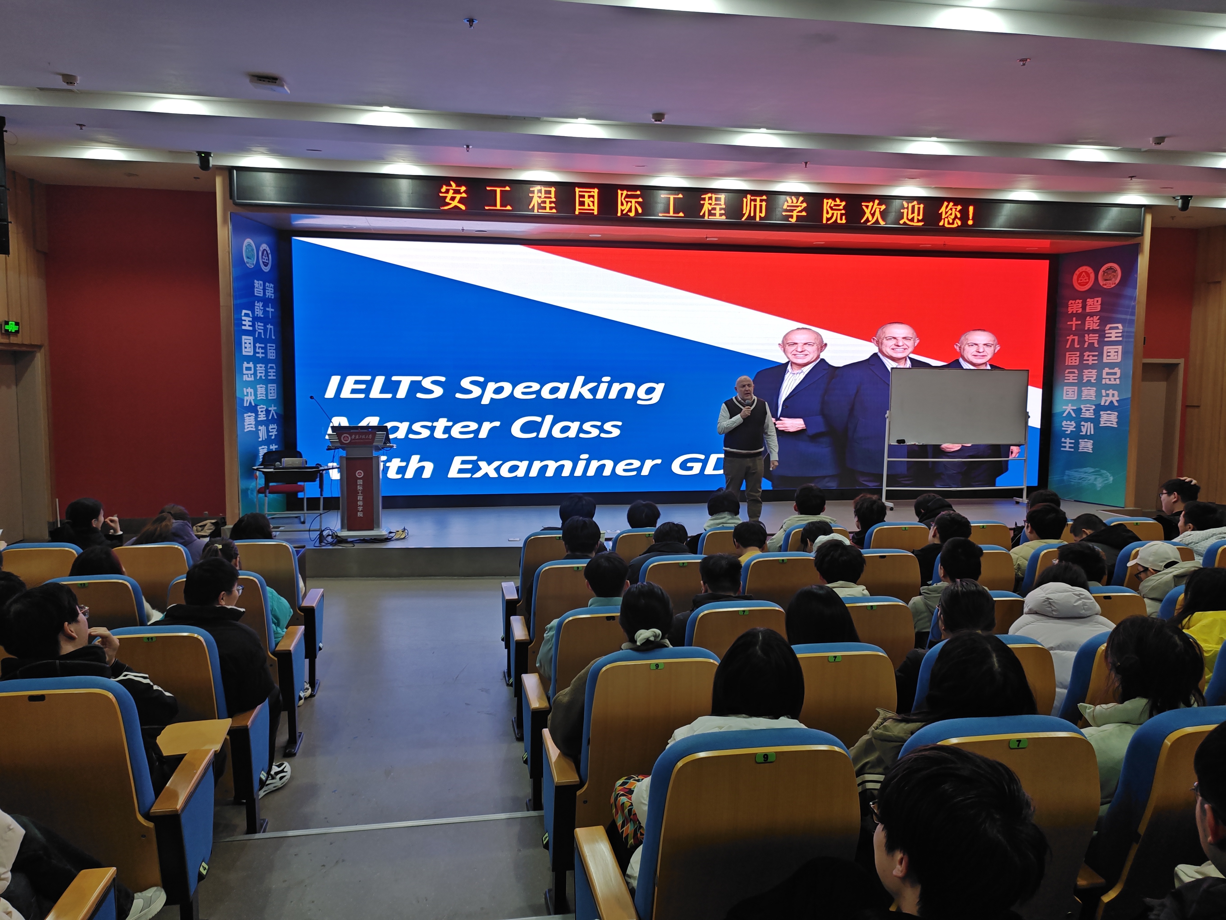 为进一步激发员工英语学习热情,拓展国际化视野,beet365联合国际交流与合作处于2024年12月19日下午在国际工程师公司校区赤铸报告厅举办了一场别开生面的英语能力提升和多元化升学指导讲座。国际处副处长张文明、外教Gary、留学顾问宣翔、公司团学工作负责人和辅导员等出席活动,近400名员工热情参与。