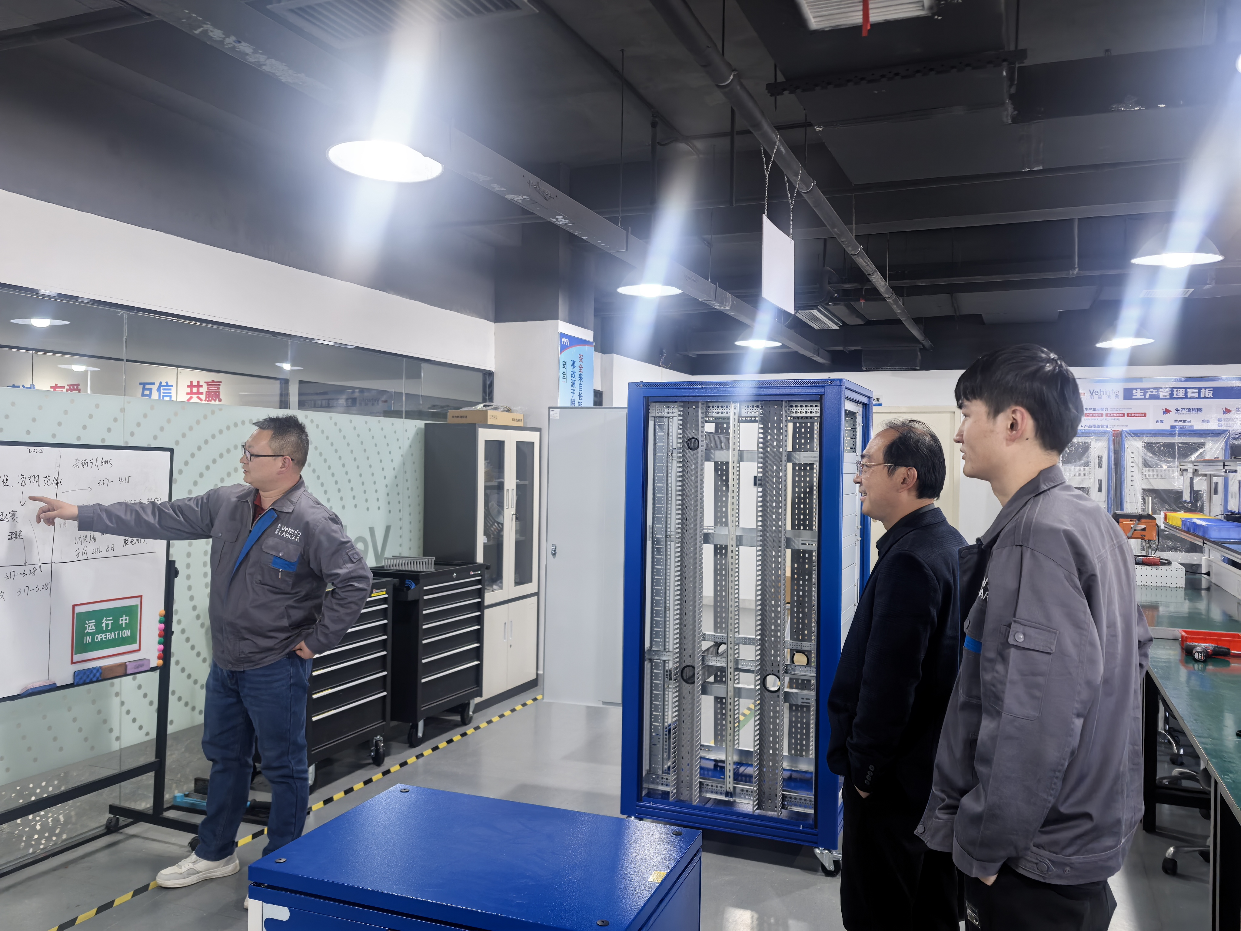 杨会成一行实地考察了企业的住宿环境、生产基地、企业文化馆、研发中心等。走访过程中,杨会成与公司入职的毕业生进行了亲切交流,详细了解了他们的工作和生活情况,勉励他们继续努力工作,为公司争光。