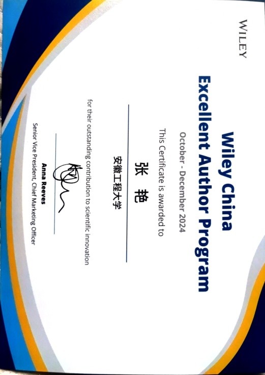 公司教师获得2024年第四季度“Wiley 威立中国高贡献作者奖”