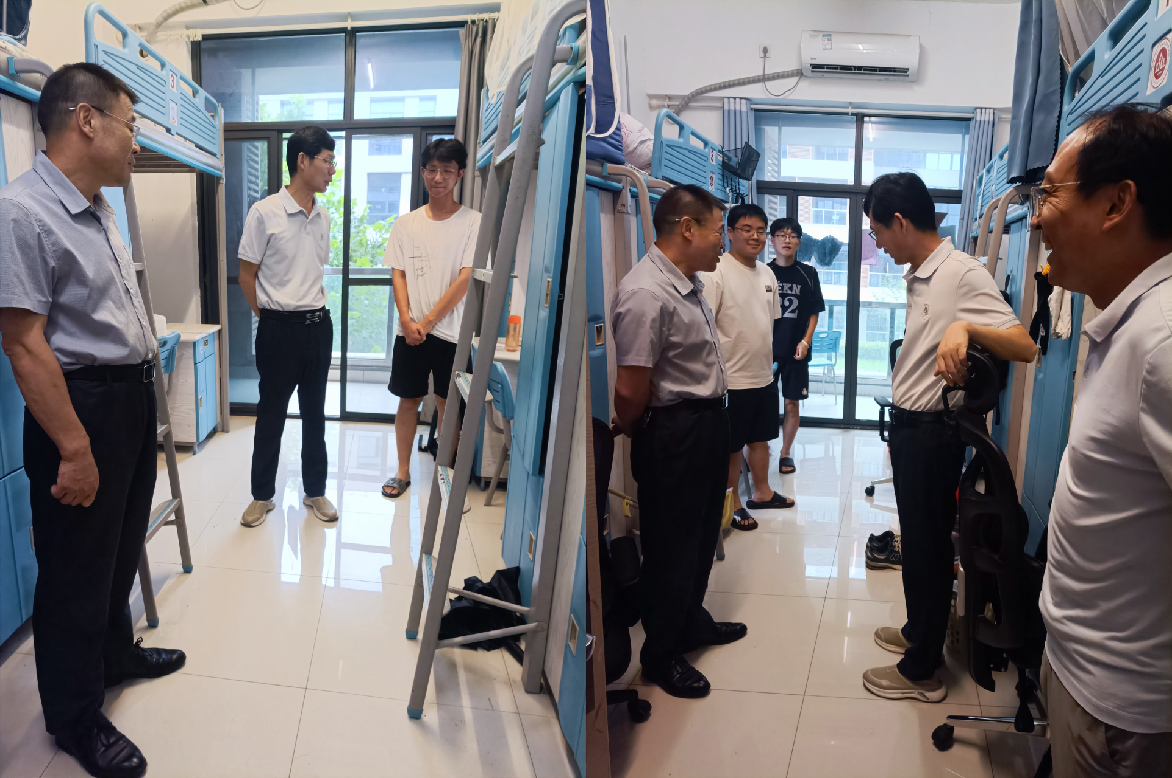 公司领导冒雨走访各搬迁点,叮嘱员工注意安全,并进入宿舍逐一看望搬迁员工。