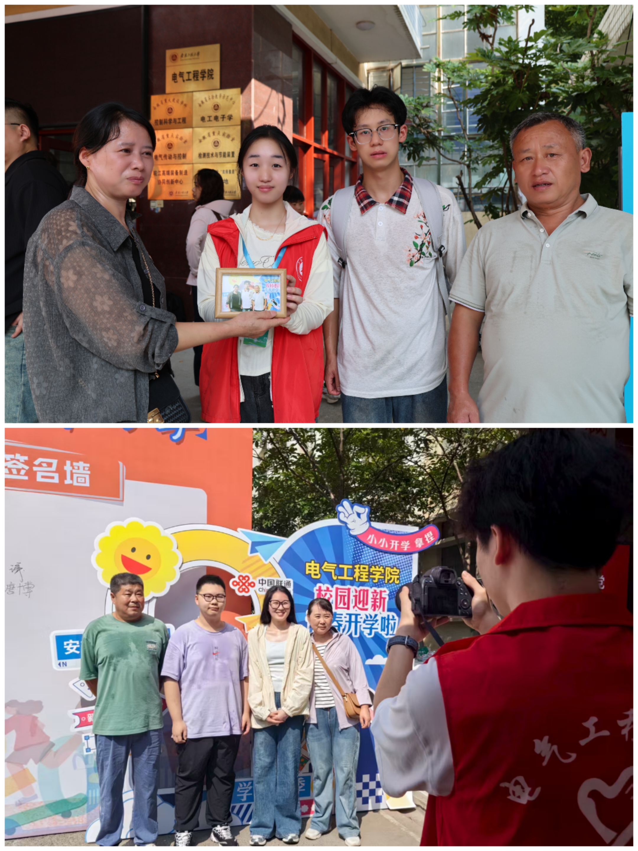 “团百花”金奖的志愿服务项目搬进报到区,为新生与家长免费拍摄入学第一张全家福,即拍即洗,配赠定制相框,定格跨越人生新起点的珍贵瞬间。