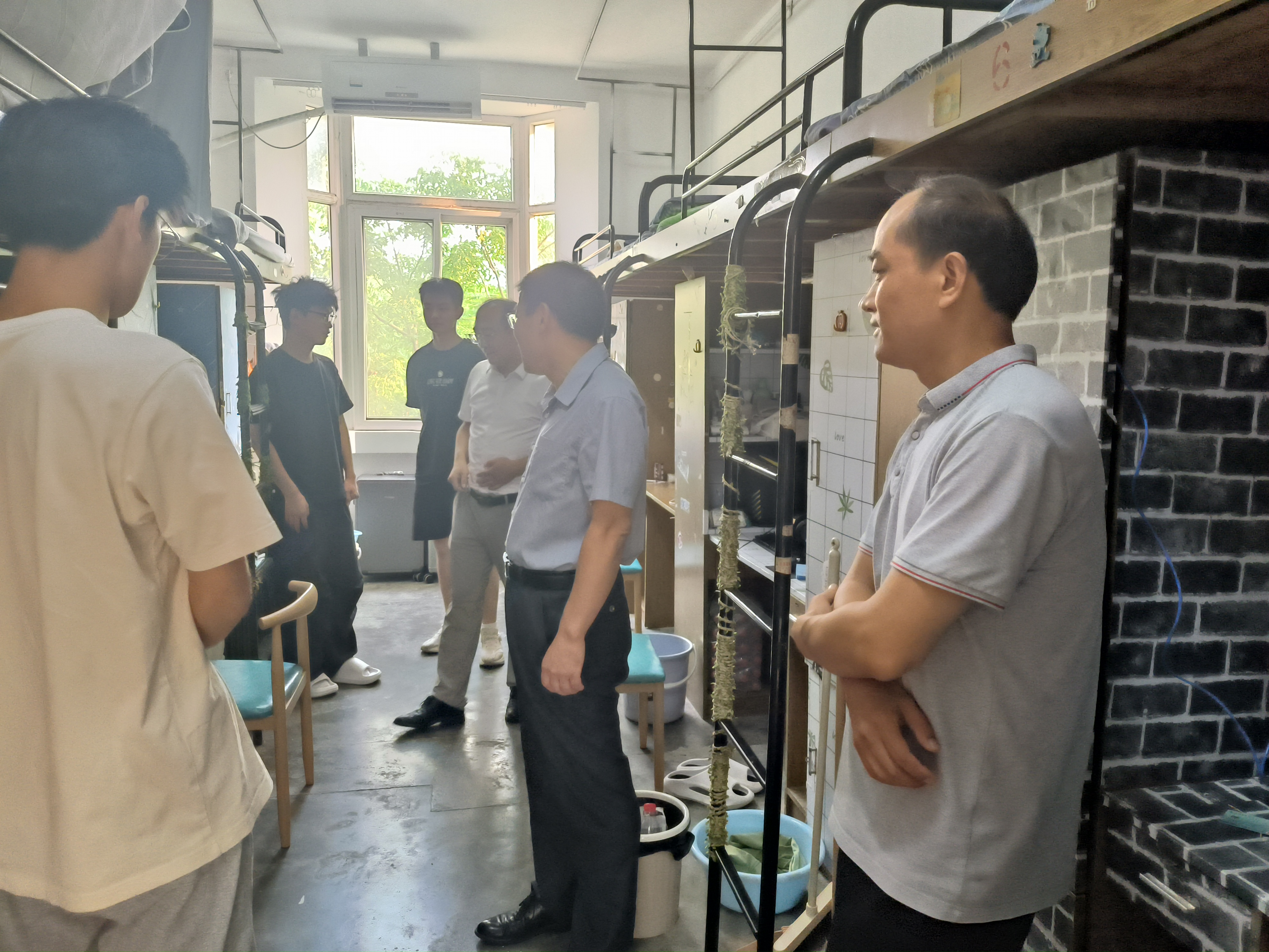 家长见面会结束后,公司党政领导与辅导员深入新生宿舍开展走访慰问。“住宿还习惯吗?有没有生活困难?”在宿舍里,领导与新生亲切交谈,仔细查看住宿环境,了解新生的生活需求与思想动态,同时叮嘱新生注意用电安全、做好宿舍卫生,尽快熟悉同学、融入集体。