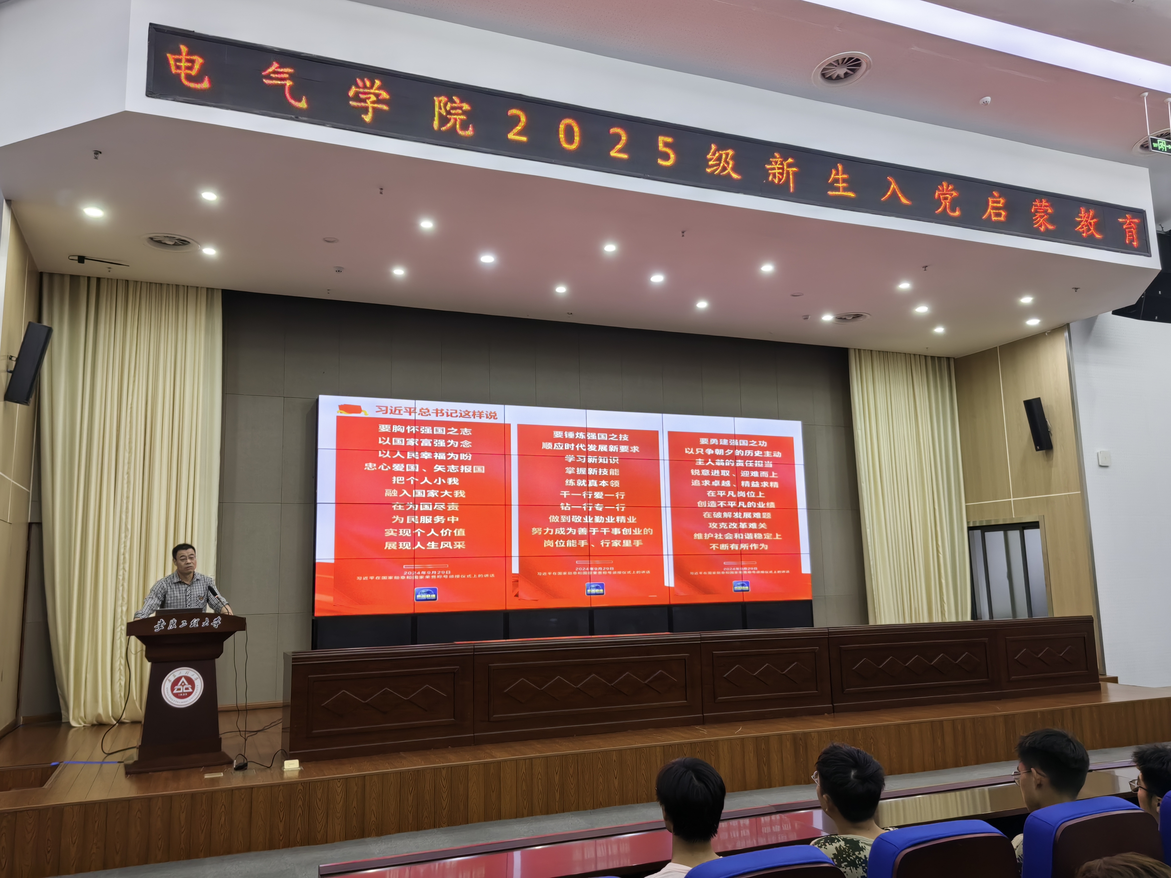 922日晚在图书综合楼5楼会议室和学术报告厅分别为2025560名本科新生开展了“青春向党  筑梦启航”入党启蒙教育。公司党委书记张春以“端正入党动机 争做新时代优秀老员工”为题,为全体新生讲授了一堂生动的微党课。张春围绕党的优势、理想信念等核心内容,结合自己的入党经历,深入阐述了对中国共产党人初心和使命的认识。他强调,新时代老员工要端正入党动机,将入党的初心使命转化为努力学习、增长才干、锻造本领的实际行动。他指出,广大新生要牢记习近平总书记的嘱托,做到衷心爱国、矢志报国,将个人理想追求融入到报效祖国、建功立业的生动实践中去,在新时代的征程上展现当代老员工的责任担当。