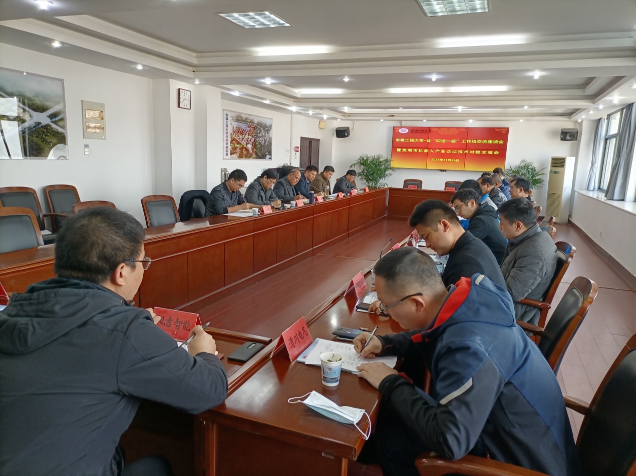 11月26日,由省“四送一服”第十一工作组组长史磊带队的省“四送一服”工作组和由市政府办一级调研员丁亚敏带队的市“四送一服”工作组一行8人来公司召开交流座谈会。公司党委常委、副董事长费为银,校科技处、相关公司负责人及芜湖市机器人产业企业的代表参加会议。会议由丁亚敏主持。