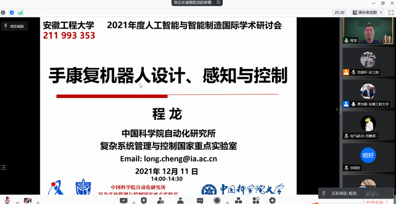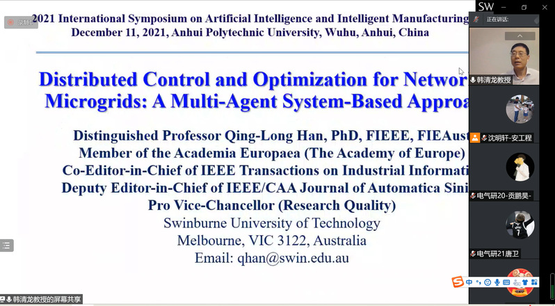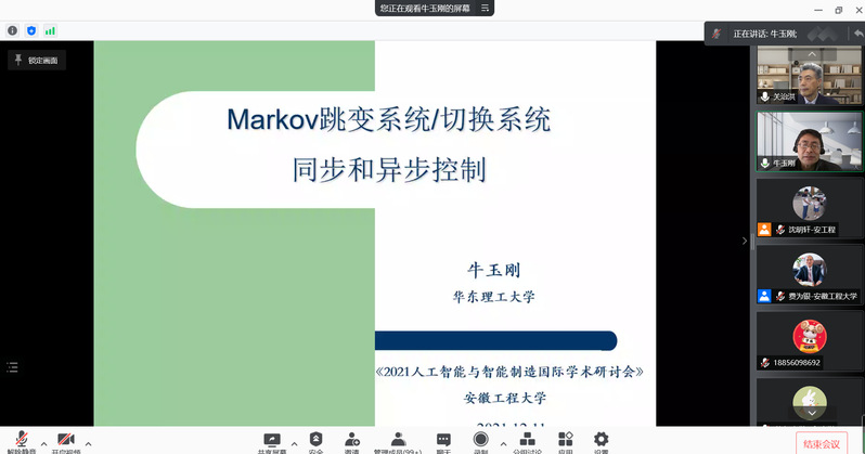 12月11日,2021年人工智能与智能制造国际学术研讨会顺利在线召开。本次研讨会由安徽省高端装备智能控制国际联合研究中心、高端装备先进感知与智能控制教育部重点实验室、公司数理与金融公司承办。公司党委常委、副董事长费为银教授主持开幕式并致欢迎辞。