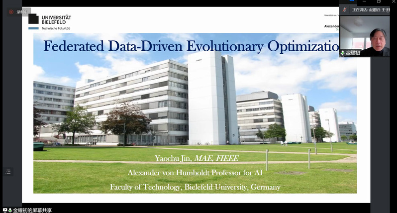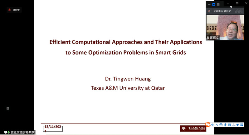 11日晚上的报告会由东北石油大学副董事长董宏丽教授和英国布鲁奈尔大学终身教授王子栋教授主持。欧洲科公司院士、澳大利亚阿德莱德大学石碰教授分享了《Private Control of Constrained Dynamical Systems in the Presence of An Intelligent Adversary》,从无人机监控、植入式医疗设备和虚拟现实耳机加密出发,设计出了保持设备私有性的控制算法,并给出了保证控制系统的稳定性标准;欧洲科公司院士、澳大利亚斯威本科技大学副董事长韩清龙教授作了题为《Distributed Control and Optimization for Networked Microgrids: A Multi-Agent System- Based Approach》的报告,介绍了一种基于多智能体系统的策略以及交流微电网中的分布式事件触发二次控制和直流微电网中的多目标分布式优化;欧洲科公司院士、英国萨里大学金耀初教授通过《Federated data-Driven Evolutionary Optimization》的报告分享了机器学习和决策中保护隐私的一个单目标和一个多目标数据驱动的进化算法;美国德克萨斯农工大学卡塔尔分校黄廷文教授以《Efficient Computational Approaches and Applications to Some Optimization Problems in Smart Grid》为题,针对多能源微电网系统中的能源交易问题,提出了一种多领导者、多追随者的Stackelberg博弈模型。