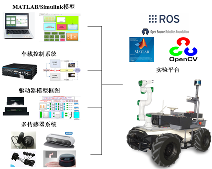 (2)平台二:基于视觉移动机械臂抓取作业机器人平台,利用MATLAB/Simulink和ROS联合开发,集成了安装Linux和ROS的控制系统,自主导航的移动底盘、多轴机械臂、执行末端、开源视觉系统和远程控制;支持智能语音控制、智能识别、GPS、5G远程图传、神经网络、深度学习等应用扩展;可完成2D/3D机器抓取等视觉实验、激光雷达的定位导航实验,如三环控制实验、电机PID调节实验、激光导航规划算法实验、ROS通讯实验、串口驱动移植实验、CAN驱动移植实验、视觉标定实验、机器视觉定位实验等。